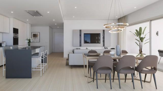 Beautiful 2 bedroom 2 bathroom apartment in a resort of over 40,000 m2 with exotic gardens. Lovely urbanization ideal for golfers who wish to be on the course in less than 2 or 3 minutes and live next to the first crystal lagoon in Europe with artificial beach around it. The homes offer an unparalleled residential experience with bright spaces that open onto balconies and terraces, ideal for enjoying the setting. Each home will feature quality finishes, including, kitchens fully equipped with appliances and double glazing windows to provide maximum insulation and comfort. They will also include centralised heat and air conditioning, and a private storage room for each flat Community pool. Coworking zone. Beach bar. Nature. Gym. Underground parking included in the price. If you want a property less than 10 minutes from a busy seaside resort on the Mediterranean, but far enough away to relax in a peaceful natural setting and overlooking a pretty lagoon, these properties are an unbeatable value.