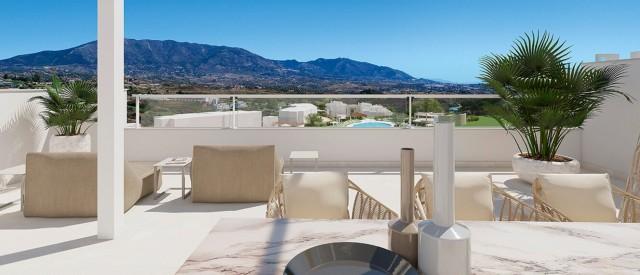 Apartments in new phase for sale in La Cala Golf, Mijas Costa consisting of a lounge, 3 bedrooms, 2 bathrooms, a fully fitted kitchen and a terrace of 29m2. Exterior private parking. Communal pool and gardens. Golf and mountain views. Quiet area. Sport facilities include 3 golf courses, tennis, football, fitness room, and Spa. New phase for sale. Owners will get Privilege Card. Completed October 2026.