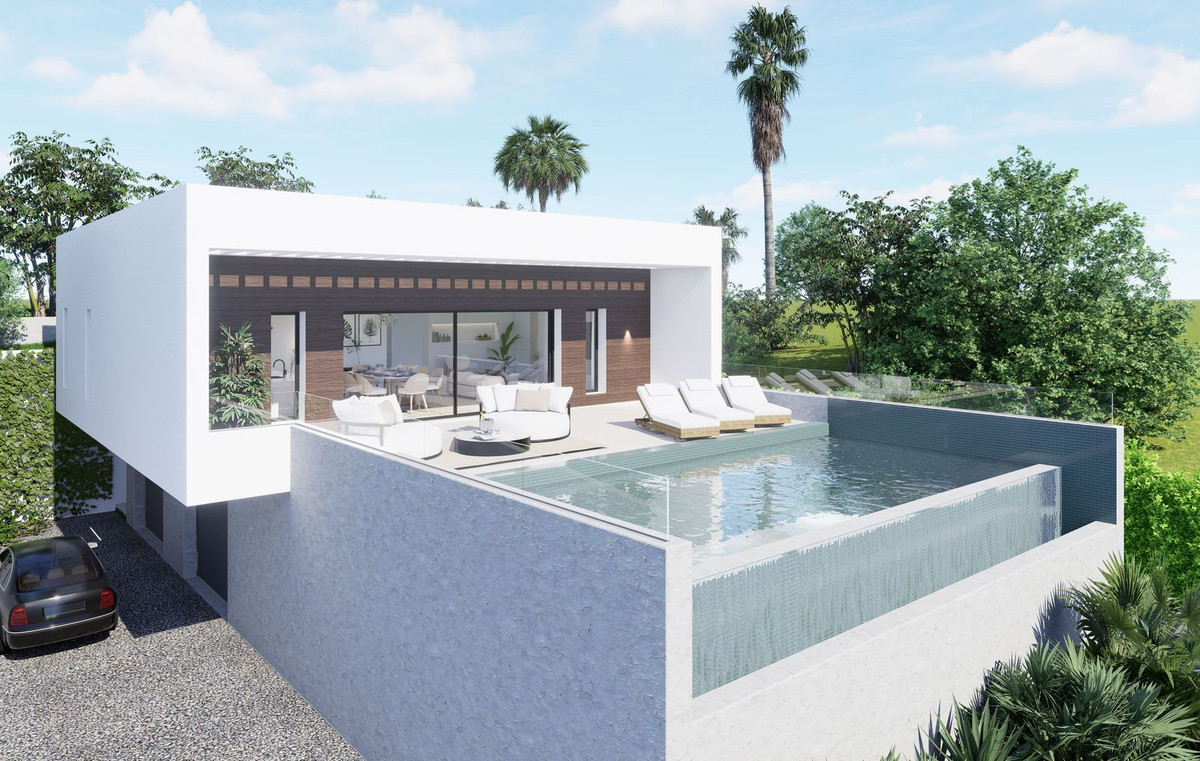 A Dream Villa in the Heart of Valle Romano – Where Modern Luxury Meets Natural Beauty Nestled within the lush green landscape of Valle Romano in Estepona, this exclusive villa offers a perfect harmony between contemporary living and the serene rhythm of nature. Surrounded by the silver-toned leaves of ancient olive trees and fragrant native flora, you'll wake up every day to panoramic views stretching from the mountains to the Mediterranean Sea. Each season brings a new palette of colors, making this a truly year-round haven. Welcome to a boutique collection of luxurious villas where modern elegance meets the tranquility of the Costa del Sol. With over 12 world-class golf courses within a 15 km radius, this is more than just a home—it’s a lifestyle built around leisure, comfort, and sophistication. Enjoy Mediterranean cuisine in charming Estepona, explore the glamour of Puerto Banús just 15 minutes away, or unwind on golden beaches and vibrant beach clubs only 5 minutes from your doorstep. For sea lovers, the nearby Estepona Marina offers endless sailing and boating possibilities. This small-scale yet ultra-luxurious villa is a private sanctuary designed for ultimate comfort, beauty, and privacy. Set in a prime location with views over a lake and the golf course, the home features expansive floor-to-ceiling windows and open terraces that blend indoor and outdoor spaces effortlessly, bathing the interiors in natural light. The villa’s contemporary architecture includes clean lines, an open floor plan, and a seamless connection between living spaces. The main area centers around a sleek designer kitchen equipped with premium Siemens appliances, opening up to a spacious living and dining area—ideal for entertaining or unwinding in style. The master suite is a true retreat, complete with a walk-in closet, luxurious en-suite bathroom, private terrace, and access to an infinity pool. The lay-out of the lower floor is to be customized with 2–3 additional bedrooms or home offices, and an extra bathroom, tailored to your needs and lifestyle. Step outside to a generous terrace with a stunning infinity pool, plus a lounge and dining area perfect for outdoor living. Smart, sustainable, and elegant in every detail, this villa redefines small-scale luxury—prioritizing your comfort, privacy, and individuality, while offering space for family and friends. **BUILDING LICENCE EXPECTED SOON – Still time to customize your floor plans and interior design!** Our architects are ready to help you bring your dream home to life. Is this your perfect home on the Costa del Sol? Come and experience what it means to truly unwind, indulge, and live life on your terms. ---