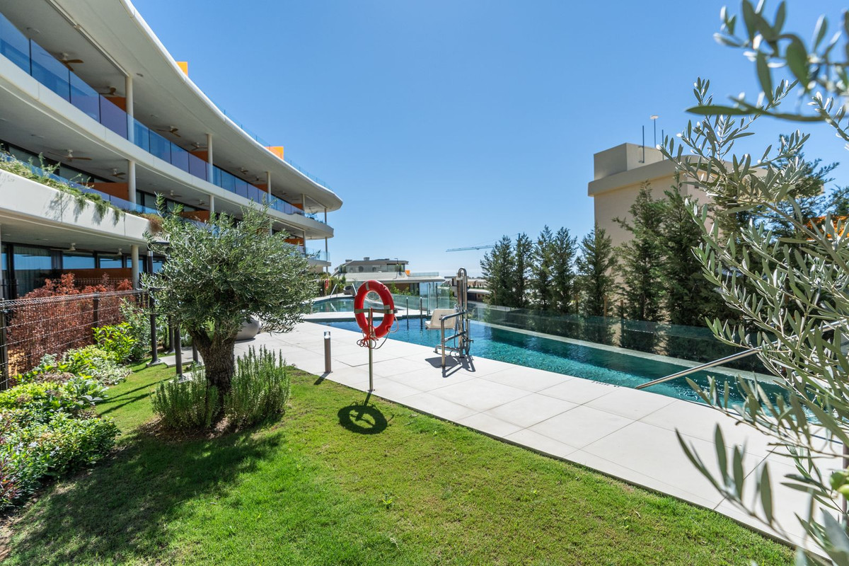 Setting: Urbanisation Orientation: South Condition: Excellent, New Construction Pool: Communal Climate Control: Air Conditioning Views: Garden, Pool Features: Covered Terrace, Fitted Wardrobes, Private Terrace, WiFi, Storage Room, Double Glazing Furniture: Optional Kitchen: Fully Fitted Garden: Private Security: Gated Complex, Entry Phone, Alarm System, 24 Hour Security Parking: Underground, More Than One Category: Contemporary