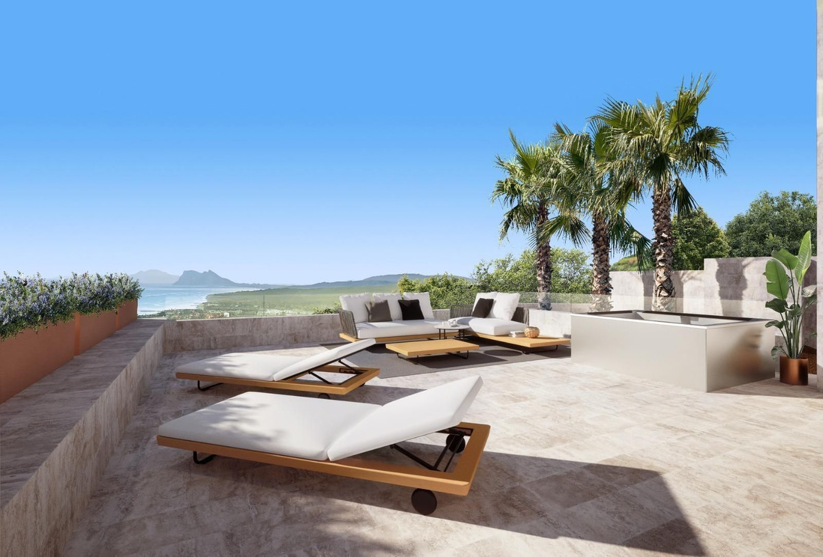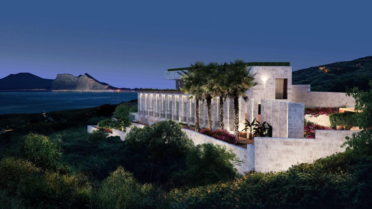 New-Build Villa La Roca de San Diego with Panoramic Views in Urbanización Invespania – 5 km from Sotogrande We present this exclusive new-build detached villa located in the Urbanización Invespania, just 5 km from Sotogrande, one of the most prestigious residential enclaves on the Costa del Sol. The property offers uninterrupted views of the Mediterranean Sea, Gibraltar, and the north coast of Africa. The residence, with a total built area of 436.91 m² plus 400 m² of terraces, is set on a 1,000 m² plot and was designed by an internationally renowned technical team. It is distributed into four en-suite bedrooms, all with built-in wardrobes and an orientation that maximizes natural light and views. The villa has a total of six bathrooms. The main floor features an open-concept living area that integrates the kitchen, dining room, and living room, connecting directly to the terrace and private garden. The basement, with an area of 136.80 m², comes with a sauna, a covered spa-pool, and leaves space for a gym or whatever room you have always desired. Regarding sustainability and energy efficiency, the villa is equipped with: An electric underfloor heating system. 9.9 kW photovoltaic panels. A private water well with a depth of 90 meters. These elements allow for high energy self-sufficiency and significant savings on operating costs. The property includes a parking space for two vehicles. Location: Proximity to top-tier golf courses such as Valderrama and La Reserva, beaches, and marinas. Just 15 minutes from Gibraltar and 30 minutes from Marbella, with excellent road connections. This property represents a solid investment and a unique opportunity for those seeking a modern, efficient residence with privileged views in one of the most sought-after areas of southern Spain. For more information or to arrange a viewing, please do not hesitate to contact us.