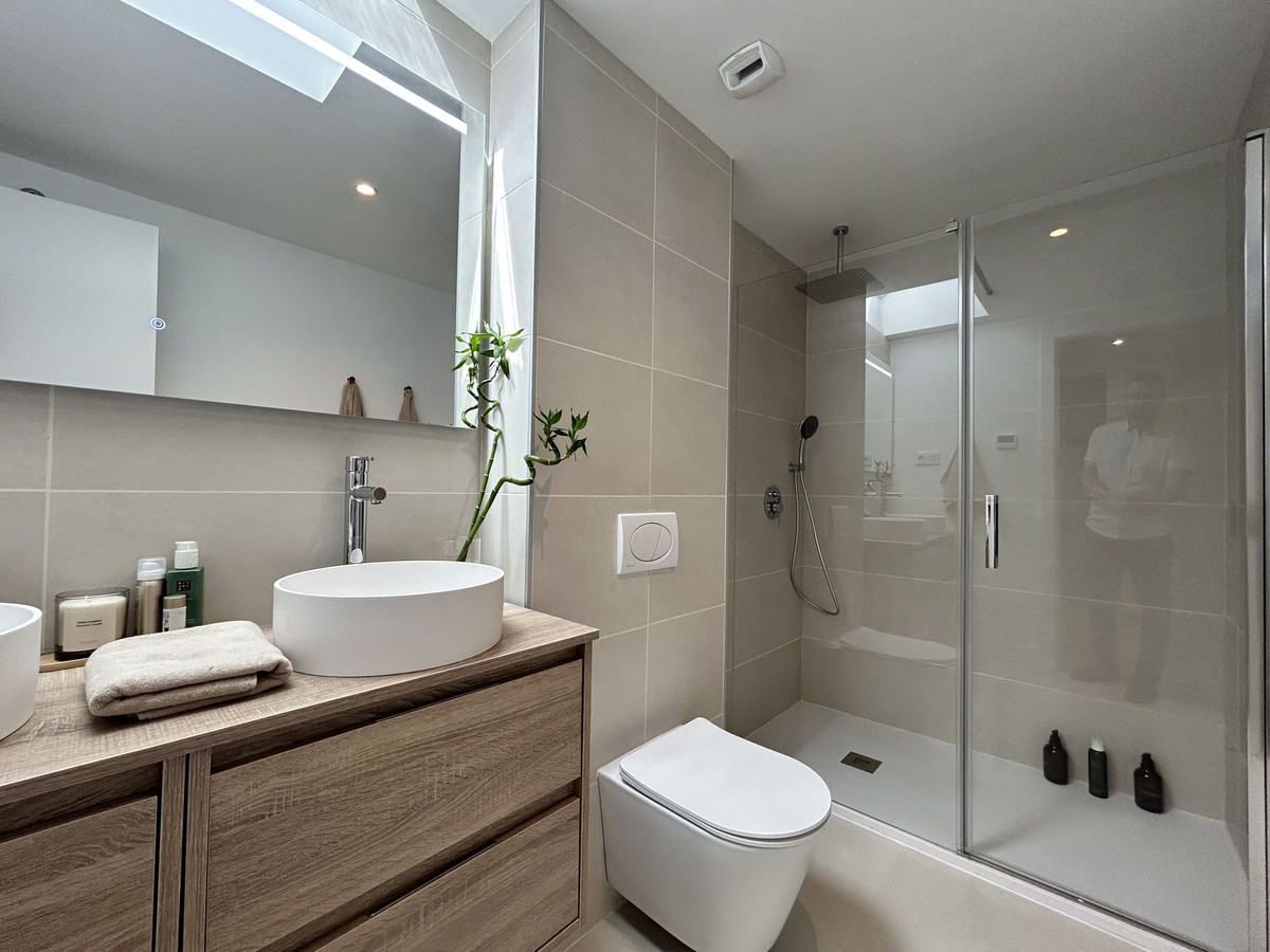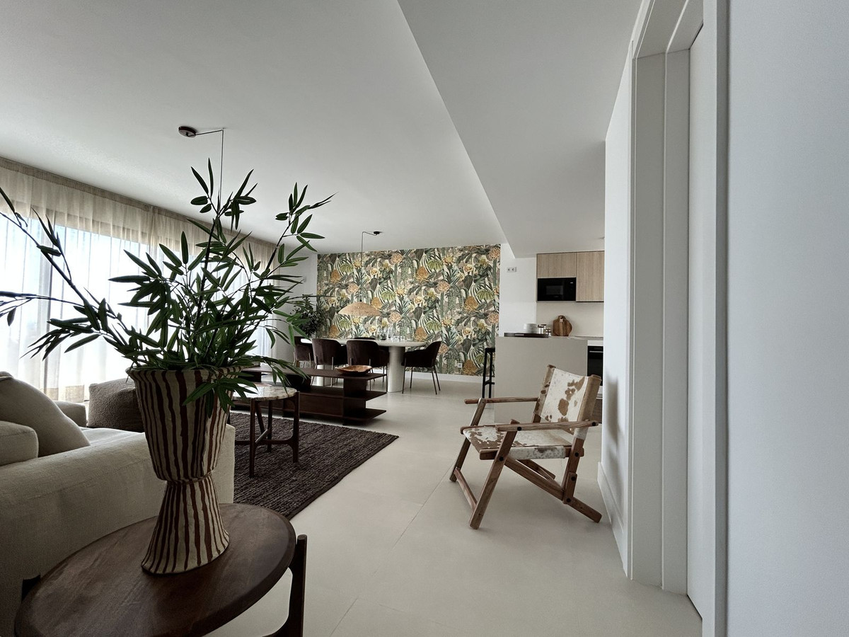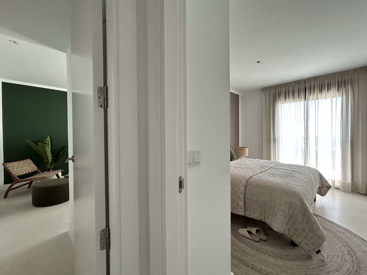 Exclusive newly built penthouse with 3 bedrooms and a spacious south-facing terrace offering spectacular sea and mountain views. The home comes fully furnished with high-end designer pieces created by Ikonia Ilusion&Arte, highlighting the carefully designed lighting and spaciousness of each room. It features a home automation system and smoke detectors, as well as Jung appliances. The modern and functional kitchen features high and low cabinetry, a Silestone countertop, and paneled appliances with an A energy rating (hob, oven, microwave, extractor hood, refrigerator, dishwasher, and washer-dryer). The bathrooms feature wall-hung toilets, extra-flat shower trays with screens, and the master bathroom features a double sink with integrated cabinetry. The open-plan design combines the living room and kitchen in a single space, connected to the terrace by large sliding windows that maximize light and create a seamless transition between indoors and outdoors. Its features include air conditioning (heating/cooling via aerothermal heating), underfloor heating in bathrooms, aluminum/PVC exterior carpentry with double-glazed thermoacoustic and security windows, and pre-installed motorized blinds in the bedrooms and living room. Large-format porcelain tile flooring extends throughout the home, while fully tiled built-in wardrobes and glass railings on the terraces provide elegance and comfort. In line with a sustainable lifestyle, the home is thermally insulated and pre-installed for an electric car charger. It also includes two parking spaces and a storage room. Located in the prestigious Higuerón development, Fuengirola, this residential complex offers landscaped gardens, a communal pool, a solarium, and a jacuzzi. A true Mediterranean paradise surrounded by nature and with excellent transport links. Move into your new home in Higuerón today and start enjoying the sun, the sea, and a unique lifestyle, while your investment grows in one of the most exclusive areas of the Costa del Sol. The buyer is exempt from agency fees. Expenses arising from the purchase process, such as notary fees, registration fees, or transfer taxes, are not included in the price.