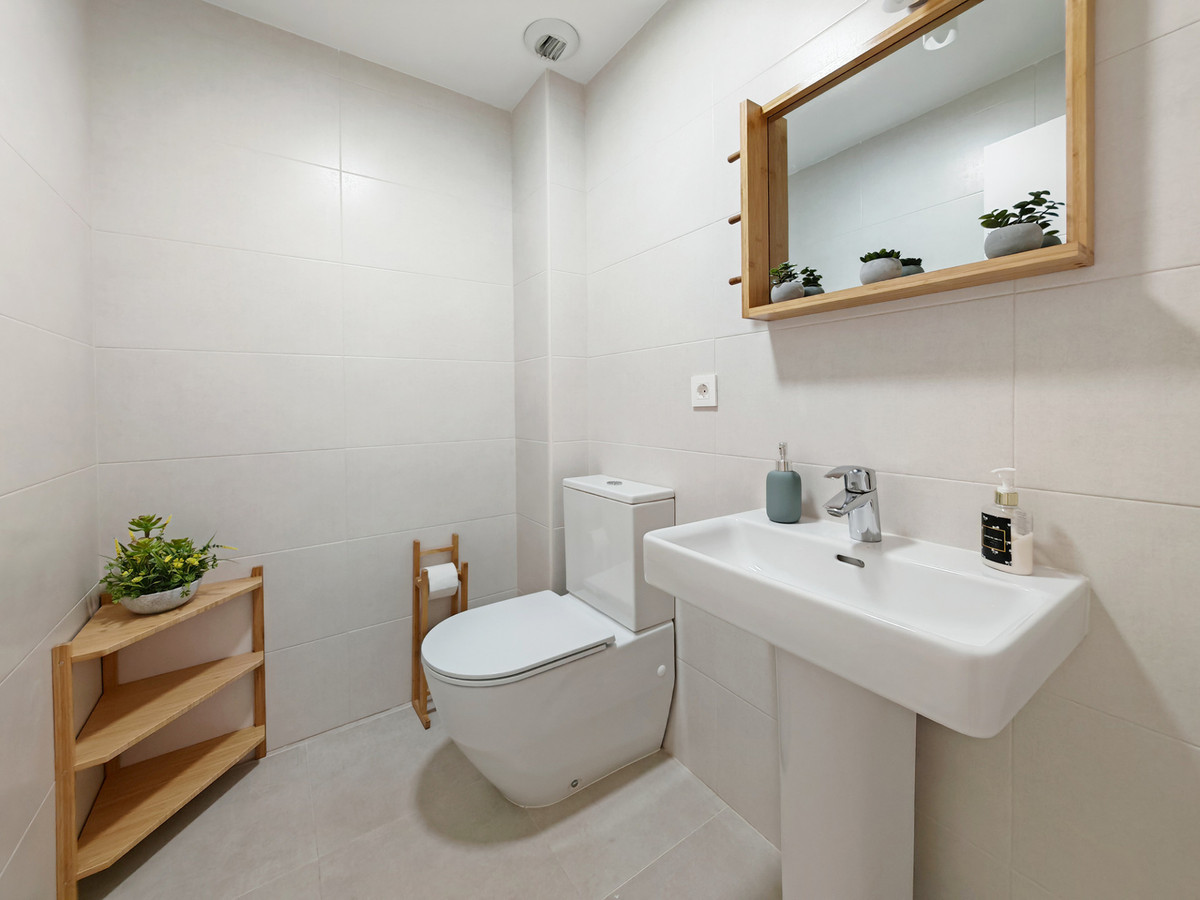 Apartment for sale in , Mijas Costa with 3 bedrooms, 2 bathrooms, 1 on suite bathroom, 1 toilet and with orientation south, with communal swimming pool and private garage (1 parking spaces). Regarding property dimensions, it has 96.79 m² built and 45 m² terrace. Has the following facilities transport near, air conditioning, fully furnished, fully fitted kitchen, storage room, gym, security entrance, double glazing, video entrance, brand new, security service 24h, guest toilet, kitchen equipped, living room, automatic irrigation system, security shutters, internet - wi-fi, covered terrace, electric blinds, fitted wardrobes, gated community, lift, garden view, pool view, street view, close to children playground, close to golf, glass doors, open plan kitchen, balcony, wheelchair-accessible, excellent condition, close to shops, close to town, close to schools, surveillance cameras and pets allowed.