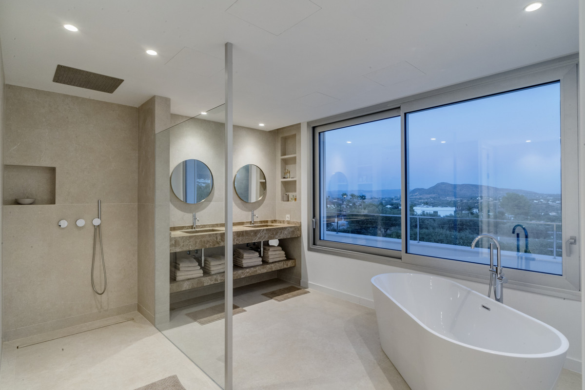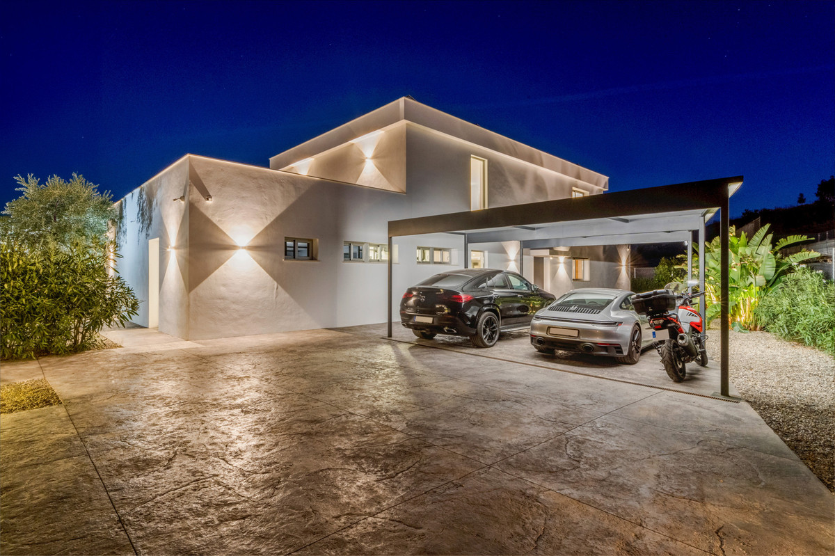 | Setting: Close To Shops, Close To Town Orientation: East Condition: Excellent, New Construction Pool: Private Climate Control: Air Conditioning, U/F Heating, U/F/H Bathrooms Views: Mountain, Country, Panoramic, Garden, Pool, Street Features: Covered Terrace, Private Terrace, Ensuite Bathroom, Double Glazing, Domotics, Fiber Optic Furniture: Fully Furnished Kitchen: Kitchen-Lounge Garden: Private Security: Electric Blinds, Entry Phone, Alarm System Parking: Covered, More Than One Utilities: Solar water heating |