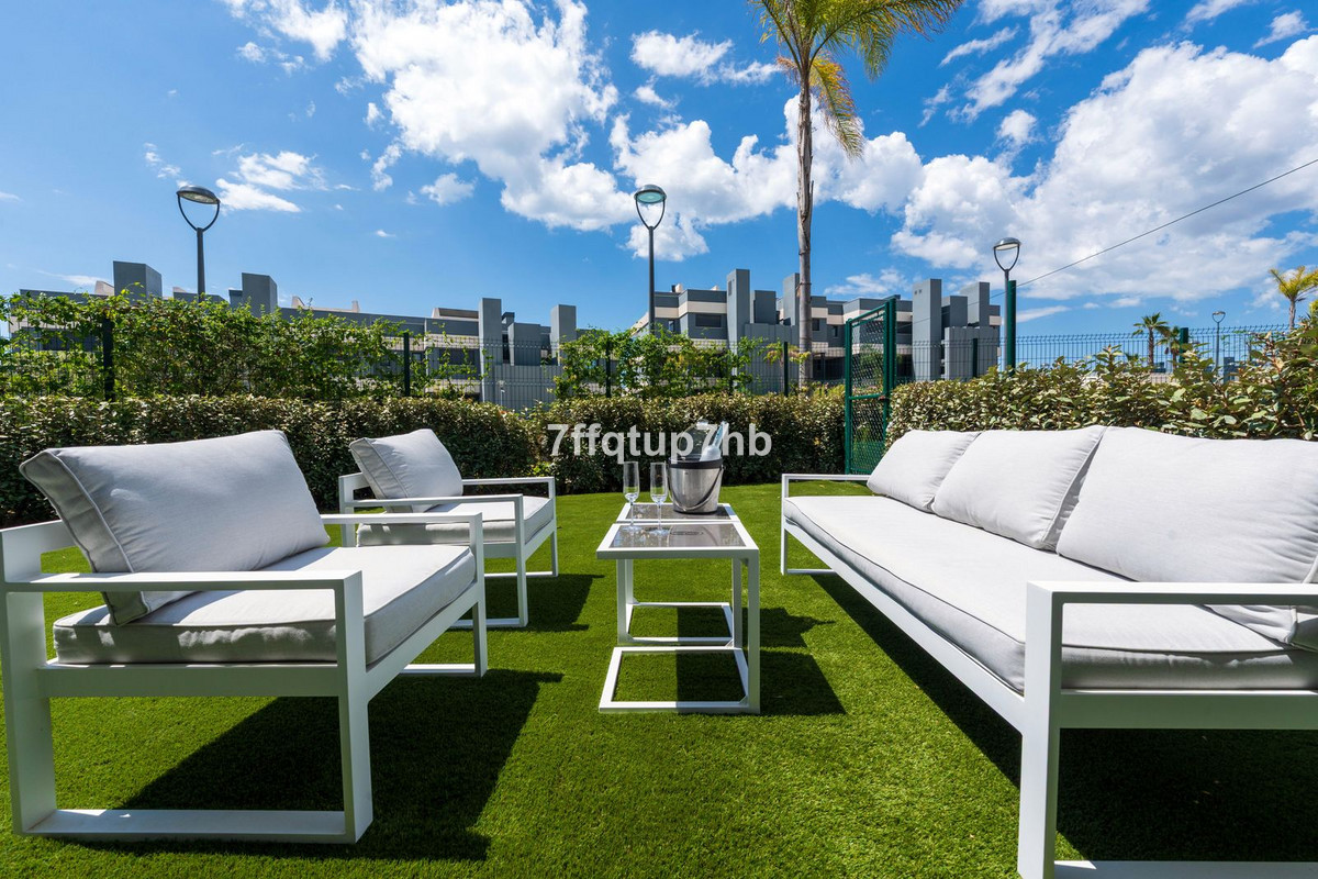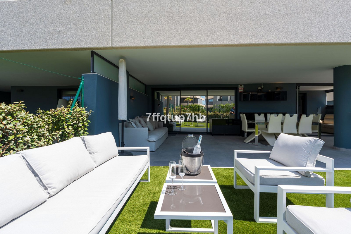 We are delighted to present this beautiful corner ground floor apartment, nestled in Phase II of the exclusive Oasis 325 development—named for the 325 days of sunshine Estepona enjoys each year. This 3-bedroom apartment features an open-plan design, seamlessly integrating a modern, fully equipped kitchen with the living area. The space opens onto a spectacular south-facing terrace and a private 80 m² garden, perfect for basking in the endless sunlight that characterizes the Costa del Sol. Two of the three bedrooms boast stylish en-suite bathrooms. The master suite offers direct access to a private terrace, fully enclosed with glass curtains, providing the perfect spot to relax in total privacy and enjoy the sunrise without leaving your room. Every detail of this apartment has been thoughtfully designed to combine functionality and style. The kitchen has been expanded with extra cabinetry and a perfectly integrated XL fridge. Additional conveniences include a separate laundry room, an independent storage room, and one underground parking space—making this home as practical as it is luxurious. All bedrooms are equipped with fully fitted built-in wardrobes and electric blinds for maximum comfort. Enhance your lifestyle with the resort-style amenities offered by this residential complex: lush gardens, outdoor swimming pools, a fully equipped gym, a luxurious spa with hammam and sauna, as well as a yoga and fitness studio—allowing you to relax or maintain an active lifestyle without leaving home. Additionally, there is a complete coworking space with a business center to meet all your professional needs. Oasis 325 enjoys a privileged location on the renowned New Golden Mile, just 10 minutes from Estepona and 15 minutes from Marbella. It is adjacent to La Resina Golf Course, 2 km from Atlas American School, and close to the popular Selwo Safari Park. Only 4 km from the beach, you can enjoy elegant beach clubs and gourmet restaurants nearby. Don’t miss the opportunity to experience everything this property has to offer. Delivered fully furnished and ready to move in!