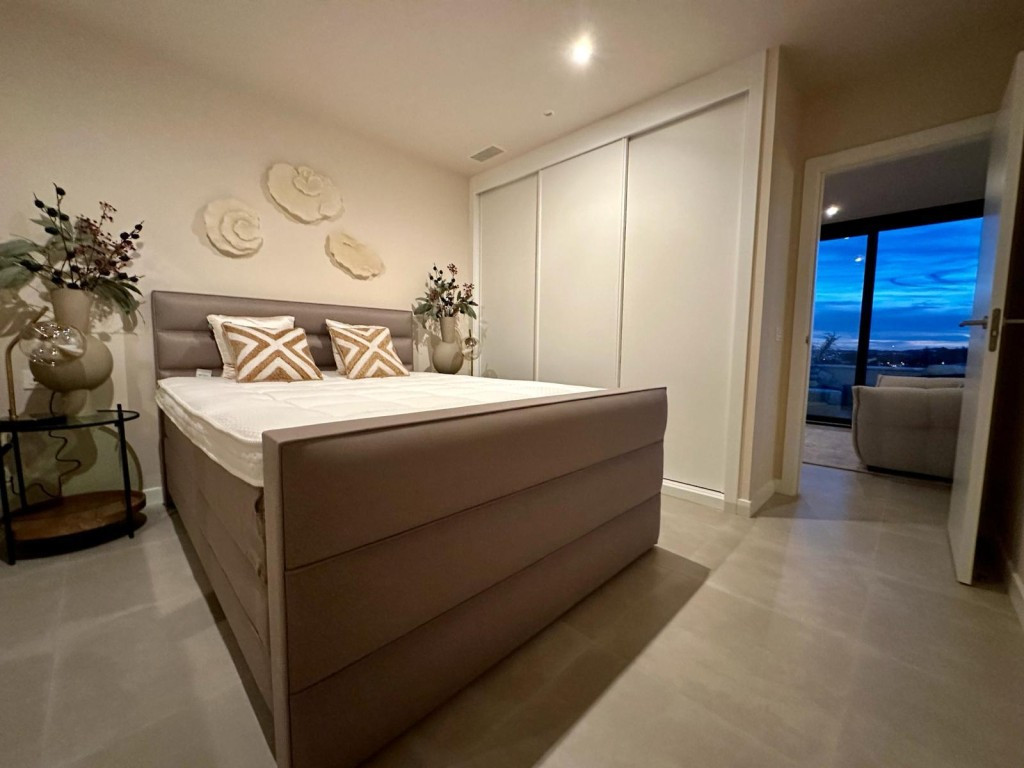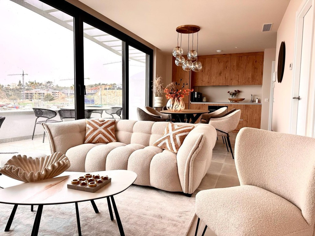 Setting: Close To Golf, Close To Shops, Close To Sea Orientation: West Pool: Communal Climate Control: Hot A/C Views: Sea, Panoramic Features: Lift, Fitted Wardrobes, WiFi Furniture: Fully Furnished Kitchen: Fully Fitted Garden: Communal Security: Gated Complex, Electric Blinds, Alarm System