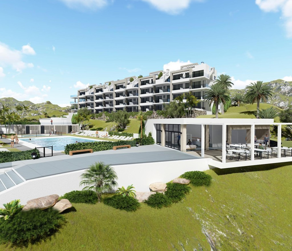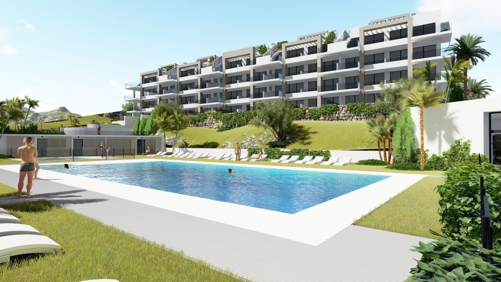 | Setting: Close To Schools Pool: Communal Climate Control: Hot A/C Views: Sea, Mountain, Pool Features: Ensuite Bathroom Kitchen: Fully Fitted Garden: Communal Security: 24 Hour Security Parking: Garage Category: New Development |