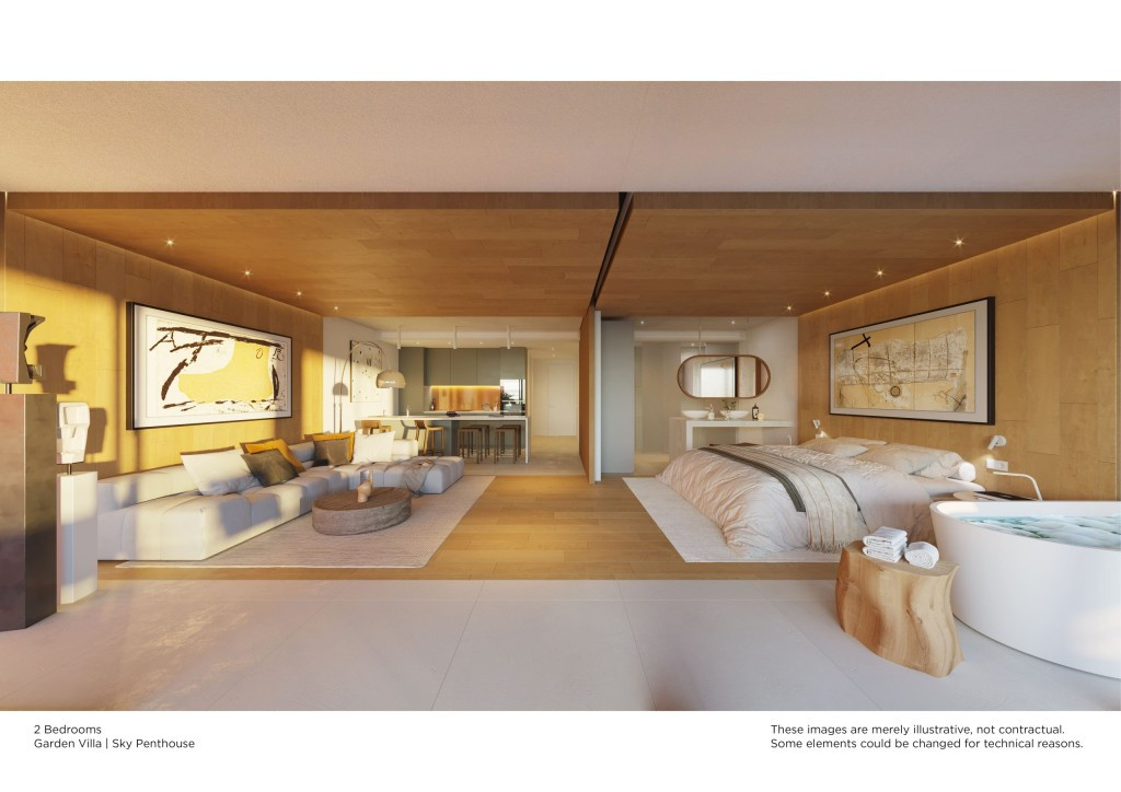 2 bed, 2 bath apartments SOLD OUT! 3 bed, 2 bath apartments from 1.320.000 euros 2 bed, 2 bath penthouses from 1.290.000 euros 3 bed, 2 bath penthouses from 1.785.000 euros Prices excl. 10% VAT A unique concept with maximum expression of luxury and exclusivity a side our Higueron Sport Club with all its services and with a guaranteed high investment profitability. It is designed for those who like to own and 'live' next to a 5 * luxury hotel and will have on site loads of community facilities which makes it different from any other Collection of the Higueron Resort. The on-site facilities include: Walking track Pet park External Cinema External Gym Yoga/exercise platform Picnic/BBQ area Farmers market & eatable garden Co-working business centre Chef cooking services Children playground The project exists out of 164 high-end luxury apartments, sky villa penthouses and sky terraces. This truly unique development will be built on the south side of the Higuerón Hotel, next to the open-air basketball and tennis court, 2 minutes walking to the Sport Club, Higueron Restaurants and Hilton Curio Hotel, 12 minutes walking to the Carvajal train station and 15 minutes to the beach. Estimated completion date for spring 2025. Apartments: 2 bed/2 bath. of approx. 130 m2 (90 m2 indoor space + 40 m2 outdoor terrace). It is possible to join 2 apartments together. Apartments: 3 bed/2 bath of (110 m2 indoor space + 30 m2 outdoor terrace). Pool Apartments: 2 and 3 beds with large terraces with private pools. Terrace Villas: corner Penthouses with 3 bedrooms and a private solarium from minimum 150 m2+ private pool, pergola, relax sunbeds etc. Sky Villas: 2 and 3-bedroom penthouses on the 4th floor, also with private solarium from minimum 150 m2+ private pool, pergola, relax sunbeds etc. One of unique characteristics of this projects is that all units will have a moveable wall between the living room and master bedroom. This gives you a loft feel, and you can sense spaciousness.