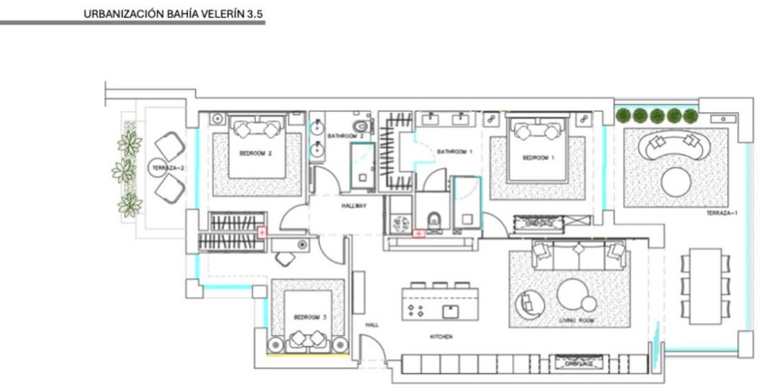 Location & Community Positioned between Marbella and Estepona, Bahía del Velerín is a prestigious beachfront gated community renowned for its lush tropical gardens, expansive lagoon-style swimming pool with snack bar, 24 / 7 security, and direct access to one of the region’s finest beaches. Property Highlights 3 bedrooms | 2 bathrooms 120 m² built interior | 38 m² terrace Fully renovated to the highest standards, with sea and garden views. South-west facing, taking full advantage of light and location. Terrace with glass curtain system and under-floor heating, effectively extending the living space for all-year use. Interior & Finishes Every detail has been considered: Designer open-plan kitchen with premium German appliances Invisible induction hob, wine fridge, Thermomix station Electric fireplace and Bang & Olufsen high-end sound system High-quality flooring, custom built-in wardrobes, hidden laundry room area Storage room and underground parking included for convenience. Lifestyle & Investment Potential Situated in one of the most sought-after beachfront communities of the Costa del Sol, the property offers the perfect blend of a luxurious permanent home, an exclusive holiday residence or a high-end rental investment. Residents benefit from immediate beach access, resort-style communal facilities and a serene yet connected coastal lifestyle. Summary Bahía del Velerín 3.5 is a turnkey luxury apartment in a prime beachfront setting, refurbished to exceptional standards and ready for immediate occupation or rental. With 3 bedrooms, 2 bathrooms, 120 m² of elegant interior space and a 38 m² terrace overlooking lush gardens and the Mediterranean Sea, this home represents an outstanding opportunity.
