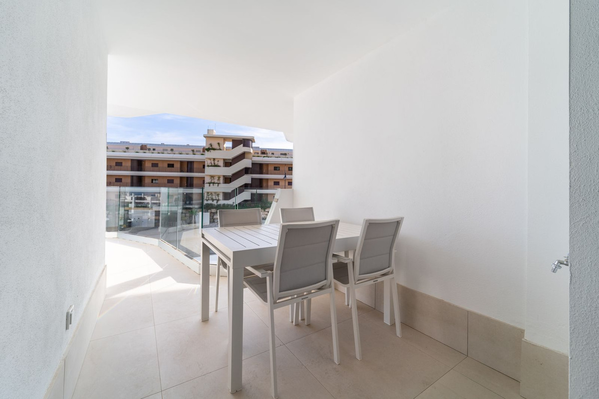 Elegant south facing apartment, in an exclusive urbanization in El Higuerón area, with 3 bedrooms, 2 bathrooms, spacious living-dining room, open plan kitchen fully furnished and equipped with electrical appliances, spacious terrace of 25m2 with urban and partial sea views. Master bedroom with ensuite bathroom. Air conditioning hot and cold, video intercom, domotic system, built-in wardrobes in all bedrooms, pre-installation alarm system. Includes two parking spaces and one storage room.