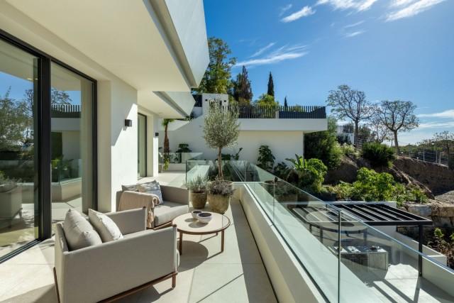 This spectacular newly built villa, located in the prestigious Elviria area of Marbella East, stands out for its contemporary architecture, designed by Francisco Martínez Galván and developed by Homerun Developments. With 454 m² of interior space and 621 m² of terraces, the property offers a modern living concept that integrates luxury, spaciousness, and functionality. Distributed over three floors, it features five en-suite bedrooms, four additional bathrooms, and two guest toilets, all finished with high-quality materials and premium equipment from brands such as Gaggenau and Siemens. Its south-facing orientation guarantees natural light and open sea views, while its location within a gated community ensures privacy and security through advanced surveillance systems. The interior combines oak floors, large porcelain tiles, and a minimalist design that creates an elegant and welcoming atmosphere. The villa includes dedicated entertainment spaces, such as a TV room, and is delivered fully furnished in a contemporary style, with the option to purchase additional furniture at an extra cost. Elviria, known for its tranquil atmosphere, excellent schools, quality beaches, and wide range of leisure and sports options, makes this property an ideal location for those seeking a refined, secure lifestyle connected to nature and the amenities of Marbella East. Furniture package: €250,000 on top of the selling price. Villa, Close to Golf, Fitted Kitchen, Parking: Garage, Pool: Private, Garden: Private, Facing: South Views: Breathtaking, Countryside, Courtyard, Mountains, Open views, Panoramic, Sea Features: 5-10 minutes to Golf Course, Air Conditioning Hot/Cold, Alarm System, Bar, Built barbecue, Close to schools, Contemporary style, Conveniently Situated for Golf, Conveniently Situated Schools, Conveniently Situated Tennis, Fitted Kitchen, Furnished, Games Room, Garage, Garden and Pool View, Ideal Family Home, Jacuzzi, Laundry room, Luxury Fittings, Marble Bathroom, Modern Style, Mountain View, Newly Built, Porcelain floor, Prestige Fitted Kitchen, Sea Views, Solarium and Jacuzzi, Stylish Accommodation, TV Room, Video Cameras, Wine Cellar