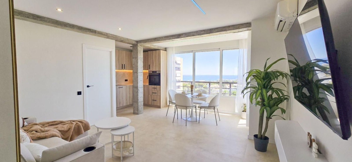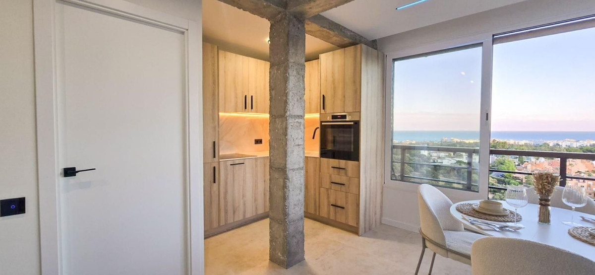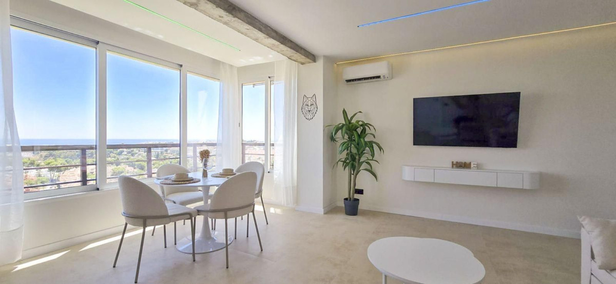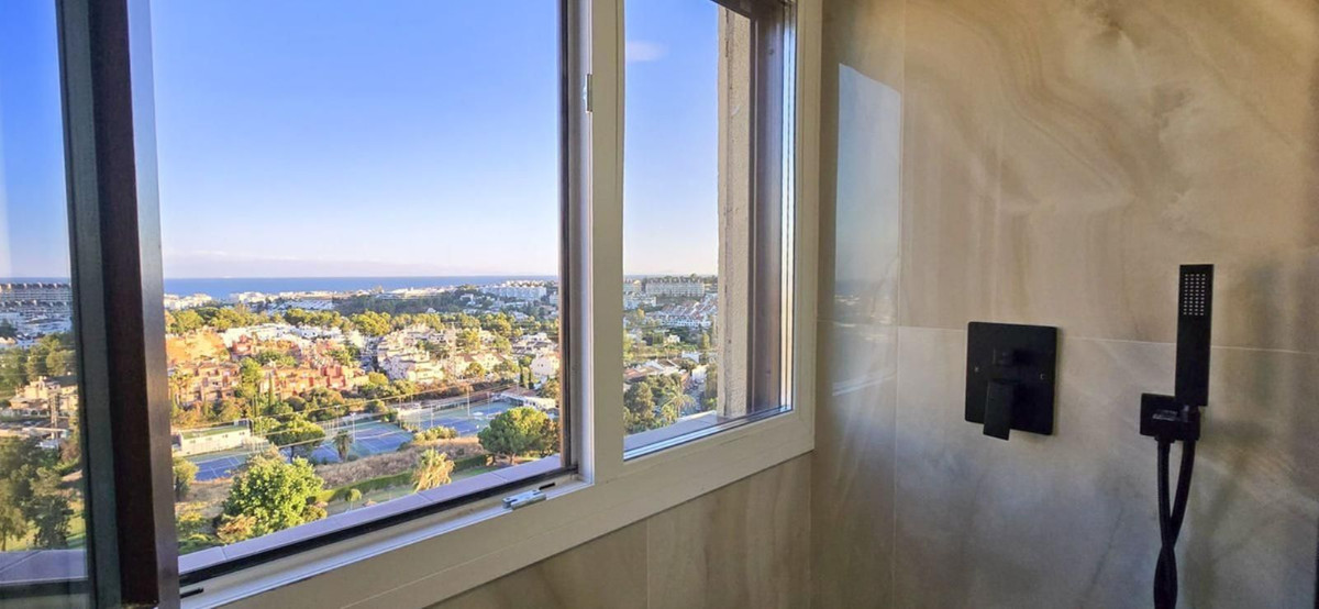 OPPORTUNITY - INVESTMENT - . JUST 100% RERURBISHED, UNDERFL. HEATING - AC - TRIPLE GLASSING - OPEN PLAN LIVING ! EASY ACCESS EASY MAINTENANCE. This fully renovated PENTHOUSE 1-bedroom, 1-bathroom apartment offers the perfect blend of modern living and comfort, nestled in the heart of Nueva Andalucía, Aloha. Boasting ,spectacular sea views of both La Concha mountain and Gibraltar, it provides a peaceful yet connected retreat close to all amenities. NOTE: ELECTRICITY AND WATER IN THE COMMUNITY FEES INCLUDED. The apartment features an open-plan layout designed to maximize space and natural light, complemented by high-quality finishes and climate control with underfloor heating throughout. Triple-glazed windows ensure excellent insulation and soundproofing (indicated as double glazing in features due to platform limitations). The fully equipped kitchen includes LED ambient lighting and top-tier German-made Bosch appliances, including a dishwasher and washing machine, all selected for performance and reliability. Additional highlights include: Reception with concierge services Communal swimming pool Gated community with communal outdoor parking Whether you're seeking a stylish home or a high-yield investment, this apartment combines panoramic views, quality construction, and a prime location—delivering on both convenience and charm.