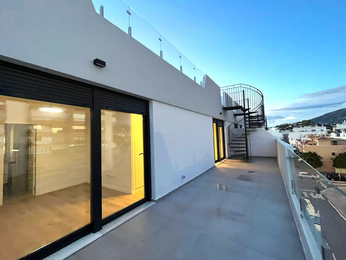 OPPORTUNITY! Penthouse with 3 bedrooms and parking space in Las Lagunas de Mijas. We present this fantastic brand new penthouse-duplex, bright, spacious and with a good location, brand new and never used before. The property stands out for its luminosity, its modern design and its large outdoor areas. It has 3 bedrooms (the main one en suite) and 2 bathrooms, as well as a large open-plan living-dining room-kitchen area with access to a spectacular 25 m² terrace. The master bedroom has a built-in wardrobe, en-suite bathroom and direct access to the terrace. The second bedroom connects to another interior terrace of 21 m², and the third, very bright, also has built-in wardrobes. On the upper floor, the property offers an impressive private solarium of 46 m² with unobstructed views where you can even see the sea. The apartment includes a parking space and storage room in the price. In addition, it has air conditioning and heating. The area is unbeatable: surrounded by supermarkets, parks, schools and all services, ideal for both living and investing. Important: in the current photos the appliances and the central island of the kitchen are missing, but both will be included in the price. We are waiting for their installation, already confirmed. An exceptional opportunity to premiere a modern, bright penthouse with large outdoor spaces. Call now and come visit it.