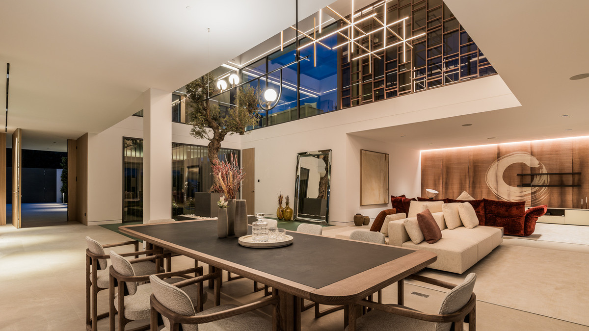 Situated within the esteemed area of the Golden Mile, this remarkable residence presents an unparalleled setting, merely 300 meters away from the beach and the promenade, boasting a diverse array of restaurants and shops. Offering an ideal option for opulent living, this dream abode is also conveniently proximate to dining establishments in Puente Romano, ensuring effortless access to all urban amenities. This property embodies an extraordinary opportunity for individuals seeking an exclusive residence in a prime location. The interior of this splendid property encompasses five bedrooms and five en-suite bathrooms, creating a capacious and sophisticated dwelling adorned with exceptionally high-quality materials. This residence provides generous indoor and outdoor living spaces, well-suited for relishing the region's exceptional climate throughout the year. The grounds host two private swimming pools of serene beauty and a verdant garden with captivating sea views. On the ground floor, a pragmatic bedroom with an en-suite bathroom is adjacent to a spacious living-dining room that seamlessly integrates with the fully equipped kitchen and terraces, granting access to the garden with its accompanying swimming pool. The upper floor is dedicated to relax, featuring three bedrooms, each with its own terrace and panoramic views. The master bedroom boasts a spacious dressing room. The basement comprises a sizeable multi-purpose room, a laundry room, a guest toilet, a bedroom with an en-suite bathroom, a cinema room, a bar with a reception area, and a garage with space for six cars. The 100-square-meter solarium includes an outdoor dining area, a swimming pool with panoramic sea views, and a chill-out area for savouring the incomparable views of the sea and the surrounding landscape. A lift seamlessly connects all levels of the property. Undoubtedly distinctive, this villa distinguishes itself not only for its prime location in one of Marbella's most desirable areas but also for its exceptional finishes, premium materials, and exquisite decor — rendering it the perfect choice for those in pursuit of luxurious living in beautiful Marbella.