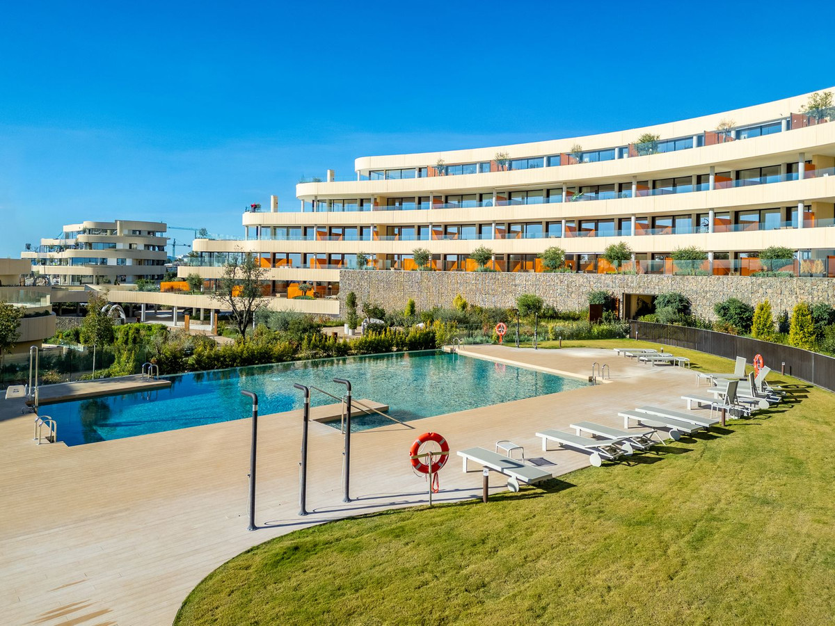 Setting: Close To Sea, Urbanisation Orientation: South East, South Condition: Excellent, New Construction Pool: Communal Climate Control: Air Conditioning Views: Sea, Panoramic, Urban, Forest Features: Covered Terrace, Lift, Fitted Wardrobes, Private Terrace, Gym, Paddle Tennis, Tennis Court, Storage Room, Utility Room, Ensuite Bathroom, Wood Flooring, Access for people with reduced mobility, Double Glazing, Domotics Furniture: Not Furnished Kitchen: Fully Fitted Garden: Communal, Landscaped Security: Gated Complex, Entry Phone, 24 Hour Security Parking: Underground, More Than One Utilities: Electricity, Drinkable Water Category: Luxury, Resale