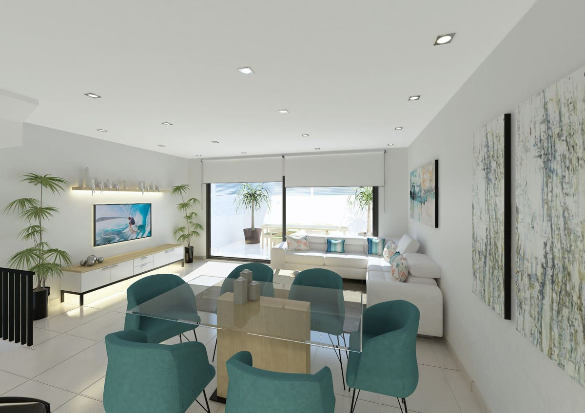 Discover contemporary coastal living in this brand-new 3-bedroom, 3-bathroom townhouse in the sought-after area of Las Lagunas. Thoughtfully designed with modern finishes and generous natural light throughout, this home blends stylish comfort with everyday convenience. Spread across multiple levels, the property features two spacious terraces plus a large rooftop solarium complete with a private pool—perfect for relaxing, sunbathing, and entertaining against panoramic views. Inside, the open-plan living area flows seamlessly to a sleek fitted kitchen, ideal for both laid-back dining and hosting guests. All three bedrooms are well-proportioned, including a luxurious principal suite with its own private bathroom. A further standout is the fully equipped basement gym, offering wellness and fitness right at home. Situated close to transport links, shops, schools, and essential services, the location provides exceptional accessibility without compromising privacy or style. A rare opportunity to enjoy modern comfort, premium amenities, and outdoor living in the heart of Las Lagunas. Not to be missed!