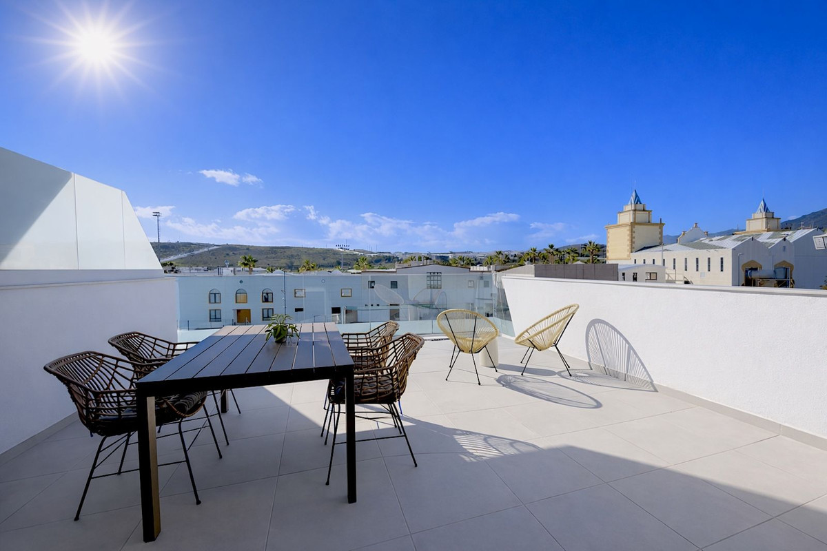 Step inside this beautiful, brand-new 2-bedroom, 2-bathroom apartment right in the heart of Estepona, where modern comfort meets effortless Mediterranean living. From the moment you walk in, the space feels light, fresh, and welcoming. Large floor-to-ceiling windows flood the apartment with natural light, creating an easy flow between the stylish interior and the private terrace, perfect for morning coffee or relaxed evenings. The open, contemporary design is paired with porcelain flooring, fitted wardrobes, and sleek, fully equipped bathrooms that feel both practical and elegant. The apartment is finished to a high standard and comes fully furnished, ready to enjoy from day one. Climate comfort is ensured year-round thanks to an aerothermal system providing hot water and air conditioning, distributed discreetly through ducts in the living room, kitchen, and bedrooms, with a thermostat conveniently located in the lounge. Set within a modern residential complex, residents enjoy beautifully landscaped gardens, a children’s playground, and a fabulous communal swimming pool—a real oasis in the town center. The building also offers lift access, underground parking, and a secure gated entrance for peace of mind. Location-wise, it doesn’t get much better. You’re within walking distance to the beach, shops, schools, cafés, and restaurants, making everyday life refreshingly easy. Estepona itself blends traditional Andalusian charm with a cosmopolitan vibe, offering over 20 km of beaches, vibrant bars, excellent dining, and plenty of water sports. Plus, quick road access along the A-7 motorway connects you effortlessly to Marbella, Málaga Airport, and Gibraltar Airport. Whether you’re looking for a stylish permanent home, a lock-up-and-leave holiday retreat, or a smart investment, this top-floor contemporary apartment ticks all the boxes—modern, central, and ready to enjoy.