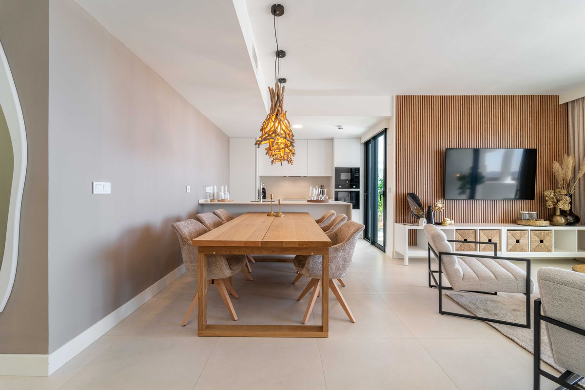 Exceptional three-bedroom residence with outstanding panoramic sea views in one of the most privileged elevated positions on the Costa del Sol. This recently completed apartment enjoys approximately 120 m² of refined interior space, complemented by a generous south-facing terrace that truly sets it apart. The views are simply spectacular — uninterrupted Mediterranean horizons, coastline perspectives, and a sense of openness that is noticeably superior to most units in the community. Inside, the property offers a seamless blend of design and comfort. The open-plan living and dining area connects effortlessly to a sleek contemporary kitchen with breakfast bar, creating a bright, social environment ideal for both everyday living and entertaining. The apartment comprises three spacious bedrooms, two bathrooms with underfloor heating (including a stylish en-suite), plus a separate guest toilet. Premium finishes include integrated air conditioning, electric blinds, built-in wardrobes and a dedicated laundry space. A private underground parking space and storage room are included. Residents benefit from a fully gated community with first-class amenities: outdoor swimming pool, heated indoor pool, spa area with sauna and jacuzzi, fully equipped gym, tennis and paddle courts, and 24-hour security. Perfectly positioned between Málaga and Marbella, only 15 minutes from Málaga International Airport and with convenient train connections to Málaga city centre. Beaches, fine dining, shopping and international schools are all within close proximity. A standout property offering superior views and long-term value — ideal as a primary residence, second home or strategic investment on the Costa del Sol.