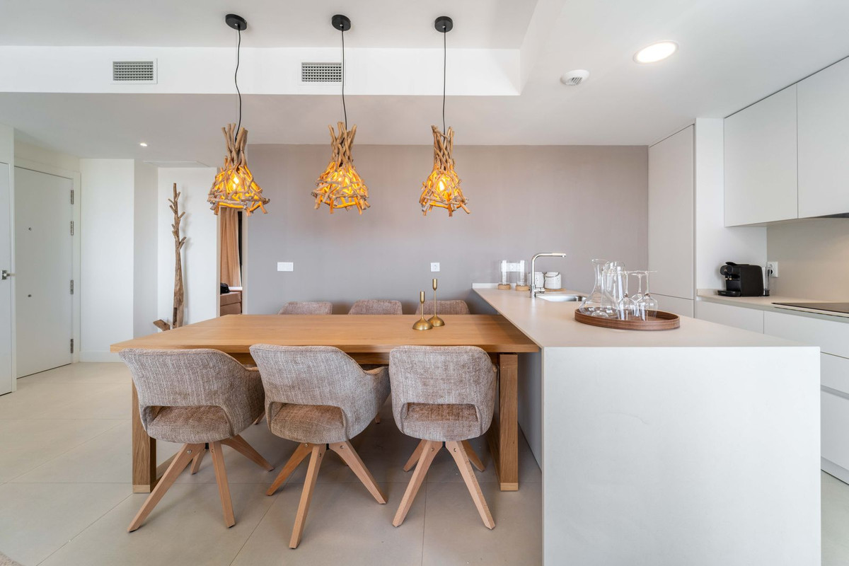 | Setting: Close To Shops, Urbanisation Orientation: South Condition: Excellent, New Construction Pool: Communal Climate Control: Air Conditioning, Central Heating, U/F/H Bathrooms Views: Sea, Mountain, Port Features: Covered Terrace, Lift, Fitted Wardrobes, Satellite TV, WiFi, Double Glazing, Courtesy Bus, Fiber Optic Furniture: Fully Furnished Kitchen: Fully Fitted Garden: Communal Security: Gated Complex, Entry Phone, Alarm System, 24 Hour Security Parking: Underground, More Than One Utilities: Electricity Category: Resale |