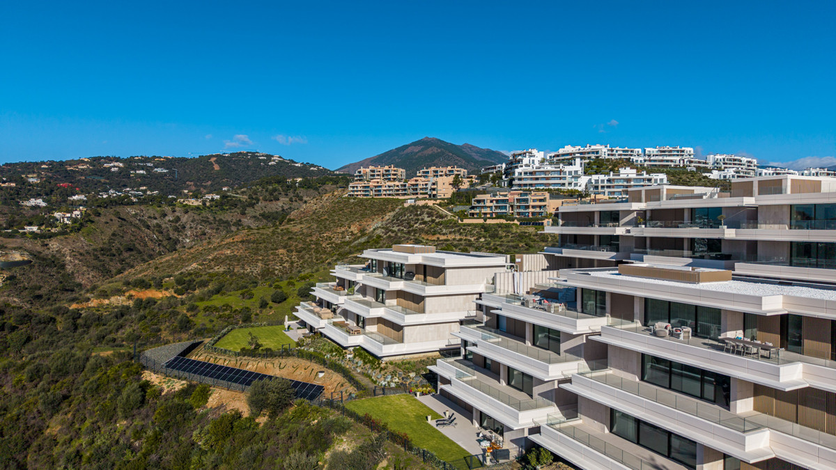 Located within the prestigious Real de La Quinta resort, surrounded by nature and only minutes from Marbella and Puerto Banus, Palmitos is a luxury residential project designed by Villarroel Torrico. With only 2 blocks and 40 homes, Palmitos stands out for its exclusivity, south orientation and panoramic views of the sea, the mountains and the golf course. The properties combine space, elegance and quality, offering generous interior areas, large terraces perfect for year-round enjoyment, and access to beautifully designed communal areas. The layouts are conceived to maximize natural light and create seamless indoor-outdoor integration. Highlights Spacious living and dining areas with open-plan kitchens Large covered terraces with panoramic views Master bedrooms with en suite bathrooms High-quality finishes and premium appliances Modern design with floor-to-ceiling windows and glass railings Climate comfort with Daikin hot and cold air conditioning, underfloor heating in bathrooms, and optional water-based underfloor heating throughout Full home automation system with remote access Top-quality aluminium carpentry with double glazing and integrated blinds Resort amenities at Real de La Quinta Golf course and academy Navigable lake with water sports Tennis and paddle club Social club with restaurant, gym and spa 24-hour security Protected natural environment with hiking trails Palmitos represents a unique opportunity to live in a privileged natural setting with all the services of a luxury resort and the comfort of a contemporary design created for modern Mediterranean living.