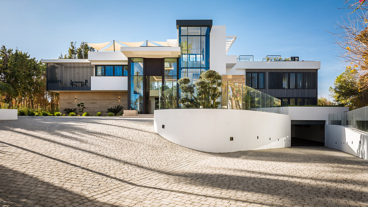 Casa La Colina is an exquisite modern residence set within the prestigious Kings and Queens enclave of Sotogrande Costa. Renowned for its broad, tree-lined avenues and proximity to the beach, marina, and premier golf clubs, this area stands as the most desirable location in Sotogrande. The home is positioned on a beautifully landscaped 3,828 m² plot, offering a seamless integration of contemporary architecture, open-plan interiors, and premium finishes—designed to elevate relaxed Mediterranean living and sophisticated entertaining. From the moment you arrive, the property impresses with its striking contemporary design, characterized by clean lines, natural materials, and expansive floor-to-ceiling glass that invites natural light and connects the interiors effortlessly to the surrounding gardens. A grand, spacious entrance opens to a stunning double-height main living area, rising six meters high, which immediately sets a tone of openness and modern elegance. Thoughtfully laid out for both daily comfort and social gatherings, the home features multiple indoor and outdoor living areas. At its heart is a fully equipped Gaggenau kitchen with a central island, complemented by a separate prep kitchen and an adjoining outdoor BBQ space—perfect for entertaining. The seven bedrooms each come with en-suite bathrooms, ensuring both privacy and luxury for residents and guests. Additional features enhance the home’s appeal, including a dedicated wellness area with a sauna and steam room, a games room, and a private elevator that adds both convenience and accessibility. The rooftop solarium offers a stunning setting for relaxation, complete with a BBQ area, shower, and an open-air lounge boasting panoramic views—ideal for sun-soaked afternoons or evening gatherings. Outside, a sleek infinity pool is framed by lush, mature landscaping, creating a serene, resort-like ambiance. The large private garage provides secure parking for several vehicles, further underlining the home’s practical luxuries. Casa La Colina enjoys a prime location just minutes from the Sotogrande Marina, beach clubs, renowned restaurants, the Real Club de Golf Sotogrande, and the legendary Valderrama Golf Club. The Sotogrande International School and elite facilities for polo, sailing, and equestrian pursuits are also nearby. With Gibraltar Airport a mere 20 minutes away, and Marbella, Málaga, and Seville all within easy reach, this remarkable residence offers the perfect balance of accessibility, elegance, and tranquility—an ideal choice for a permanent home or an exceptional retreat.
