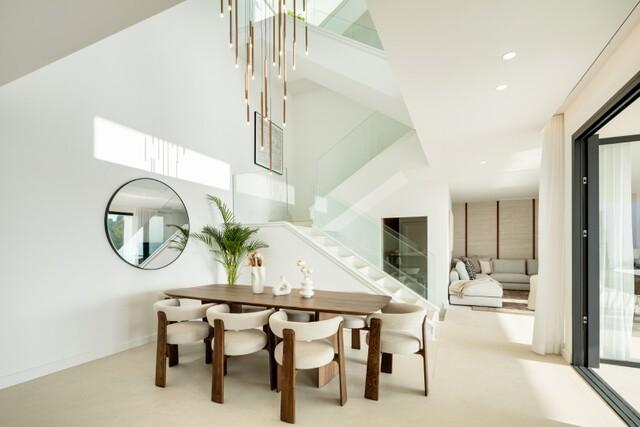 This exceptional contemporary villa represents the style, quality, and lifestyle offered within one of the most prestigious residential developments in the eastern part of Málaga. Designed with a focus on modern living, these villas combine cutting-edge architecture with natural surroundings, offering privacy, space, and beautiful sea views. Each property is set on generous plots of around 900 m², with built areas approaching 480 m², including expansive terraces that seamlessly connect indoor and outdoor living. The homes are typically distributed across multiple levels, with layouts carefully designed to maximise functionality and comfort. Bright open-plan living areas form the heart of each villa, integrating spacious lounges, dining areas, and designer kitchens fitted with high-end finishes and premium appliances. Large floor-to-ceiling windows allow natural light to flow throughout the interiors while framing panoramic views of the Mediterranean coastline and surrounding hills. Bedroom areas are designed with privacy in mind, often grouped on a single level and including elegant en-suite master suites alongside additional guest or family bedrooms. Lower ground floors provide versatile spaces that can be customised as cinema rooms, gyms, wine cellars, or guest accommodation, depending on individual lifestyle requirements. Underfloor heating and advanced construction standards ensure year-round comfort, while the overall design prioritises clean lines, natural materials, and a seamless indoor-outdoor experience. Lifestyle & Location Set in a tranquil and elevated environment surrounded by greenery, the development offers a unique balance between tranquillity and accessibility. The vibrant coastal neighbourhoods of Pedregalejo and El Palo are just a short drive away, offering beachfront restaurants, promenades, and a relaxed Mediterranean lifestyle. The area is highly regarded by families, with renowned international schools such as Lycée Français International de Málaga and St. George’s British School Málaga within easy reach. Excellent transport connections provide quick access to Málaga city centre, the airport, and the wider Costa del Sol, making these villas ideal as both permanent residences and second homes. Typical Features: - Contemporary architectural design - Approx. 450–500 m² built areas - Plots of around 900 m² - 4+ bedrooms and multiple bathrooms - Expansive terraces with sea views - Open-plan living spaces with designer kitchens - Multipurpose lower levels (cinema, gym, guest suite) - Underfloor heating throughout - Private parking - Gated & elevated residential setting
