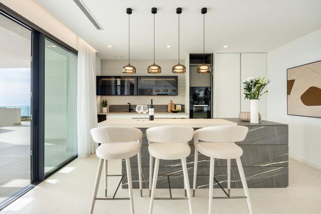 Modern Style Contemporary style Newly Built Newly Fitted Bathroom Fitted Kitchen Fitted Wardrobes Fully fitted bathroom Built to High Standards High Ceilings Sea Views Air Conditioning Hot/Cold Double glazing windows Luxury Fittings Under Construction Various Terraces Gated Complex Automatic garage door Video entry system Possibility to install lift Laundry room