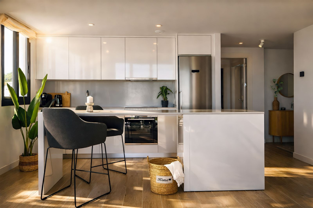 Setting: Town, Close To Port, Close To Shops, Close To Sea, Close To Town, Close To Schools, Close To Marina, Urbanisation Condition: Excellent, New Construction Pool: Communal Climate Control: Air Conditioning, Pre Installed A/C, Hot A/C, Cold A/C Views: Sea Features: Fitted Wardrobes, Near Transport, Private Terrace, Gym, Storage Room, Double Glazing Furniture: Fully Furnished Kitchen: Fully Fitted Garden: Communal Security: Gated Complex Parking: Underground Utilities: Electricity, Drinkable Water, Telephone Category: Resale, Contemporary
