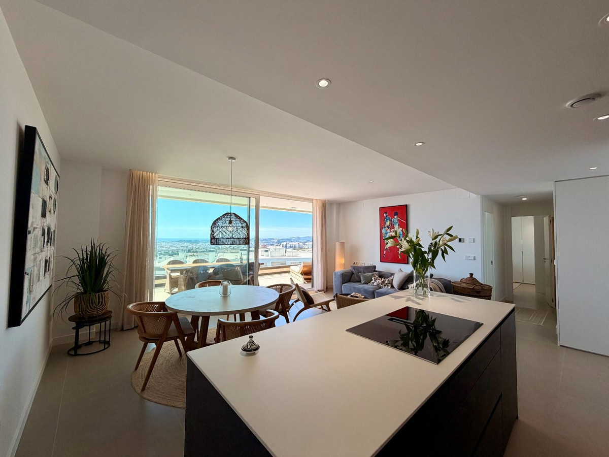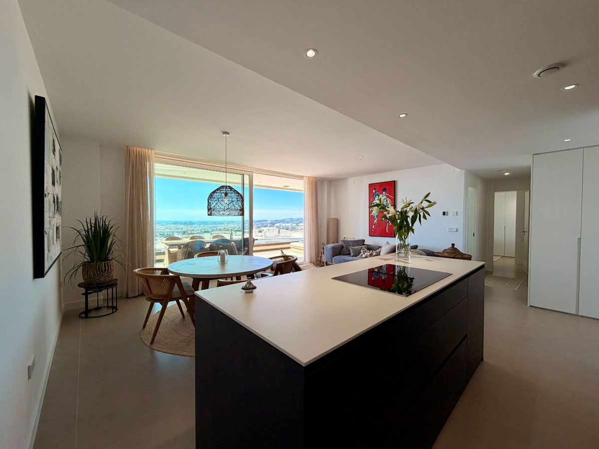 Exclusive Designer Topfloor apartment with Panoramic Mediterranean Views / Fuengirola - Higuerón A rare opportunity to secure a top-floor designer residence in one of the Costa del Sol’s most sought-after gated communities — where luxury living meets intelligent efficiency. This contemporary penthouse offers breathtaking, uninterrupted views across the Mediterranean Sea, Fuengirola marina, and the coastline — creating a spectacular setting from morning light to evening sunset. Elevated Living with Intelligent Comfort Beyond its striking design, this residence is engineered for year-round comfort with remarkably low running costs — a key advantage for both homeowners and long-term investors. • Private, energy-efficient heat pump system • Individually controls both air conditioning and underfloor heating • Significantly reduced energy consumption compared to traditional systems • Ideal for full-time living or extended stays without high utility expenses This combination of luxury and cost-efficiency is rarely found in properties of this caliber. The Residence • Two spacious bedrooms with bespoke built-in wardrobes • Two refined bathrooms with walk-in showers • Underfloor heating throughout the entire property • Fully integrated air conditioning system • Smart home and security system • Designer kitchen with premium Siemens appliances • Siemens washing machine and tumble dryer included • Expansive private terrace with panoramic sea and marina views Exclusive Community Lifestyle A low-density, high-end environment designed for privacy and well-being: • Two panoramic infinity pools • Indoor heated pool • Fully equipped gym • Sauna and wellness facilities Tourist rentals are not permitted, ensuring a शांत, private atmosphere and protecting long-term property value. Location & Accessibility Located just 15 minutes from Málaga-Costa del Sol Airport, the property offers seamless access to international travel while remaining in a მშვიდ and secure residential enclave. A Smart Luxury Investment This is more than a beautiful home — it is a strategic lifestyle investment: • Low ongoing costs • High build quality and energy efficiency • Strong long-term value in a tightly held community • Rare availability of top-floor units Properties like this are seldom available in Higuerón. Private viewings by appointment only.