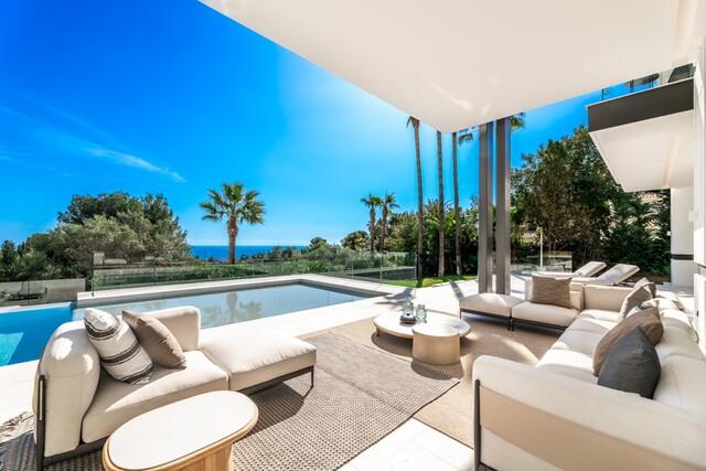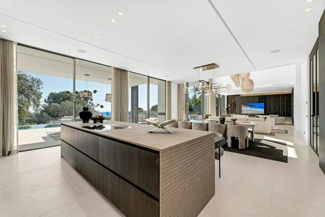 This exceptional luxury villa, designed by renowned architect Miguel Tobal, represents the pinnacle of contemporary Mediterranean living. Located within an exclusive gated community, this prestigious residence offers ultimate privacy, refined elegance, and panoramic sea views, making it one of the most desirable high-end properties currently available. A striking double-height entrance welcomes you into expansive open-plan interiors, where soaring ceilings and floor-to-ceiling windows flood the home with natural light. The seamless indoor-outdoor flow enhances the sense of space, while breathtaking coastal views and landscaped surroundings create a serene and sophisticated atmosphere. At the heart of the home, a central lounge connects beautifully with multiple living areas. One wing features a stylish and comfortable TV room, while the opposite side hosts a spectacular dining area and designer Modulnova kitchen, fully equipped with premium Gaggenau appliances and an innovative concealment system. An additional service kitchen ensures effortless entertaining, with direct access to a fully equipped outdoor BBQ area and a state-of-the-art wine cellar. The main level includes two spacious guest suites, each offering privacy, bespoke finishes, and contemporary luxury design. The upper floor is dedicated to an impressive master suite, complete with a generous walk-in wardrobe, spa-inspired bathroom, and private terrace with stunning sea views. Three additional en-suite bedrooms on this level provide generous proportions, natural light, and elegant finishes. The lower level is designed for wellness and entertainment, featuring a heated indoor swimming pool, Hammam, sauna, and bright English patio. A fully equipped gym, elegant bar, games room, and comfortable TV lounge create the ultimate luxury lifestyle experience. A six-car garage completes this level, ideal for collectors. Advanced home technology includes a fully integrated smart home system, climate control, lift access, and automated window solutions throughout. Outside, landscaped gardens surround a spectacular infinity pool, offering complete privacy and tranquil outdoor living. This extraordinary contemporary villa combines architectural excellence, luxury amenities, and timeless design, creating a unique opportunity to acquire a landmark luxury property in a highly sought-after setting.