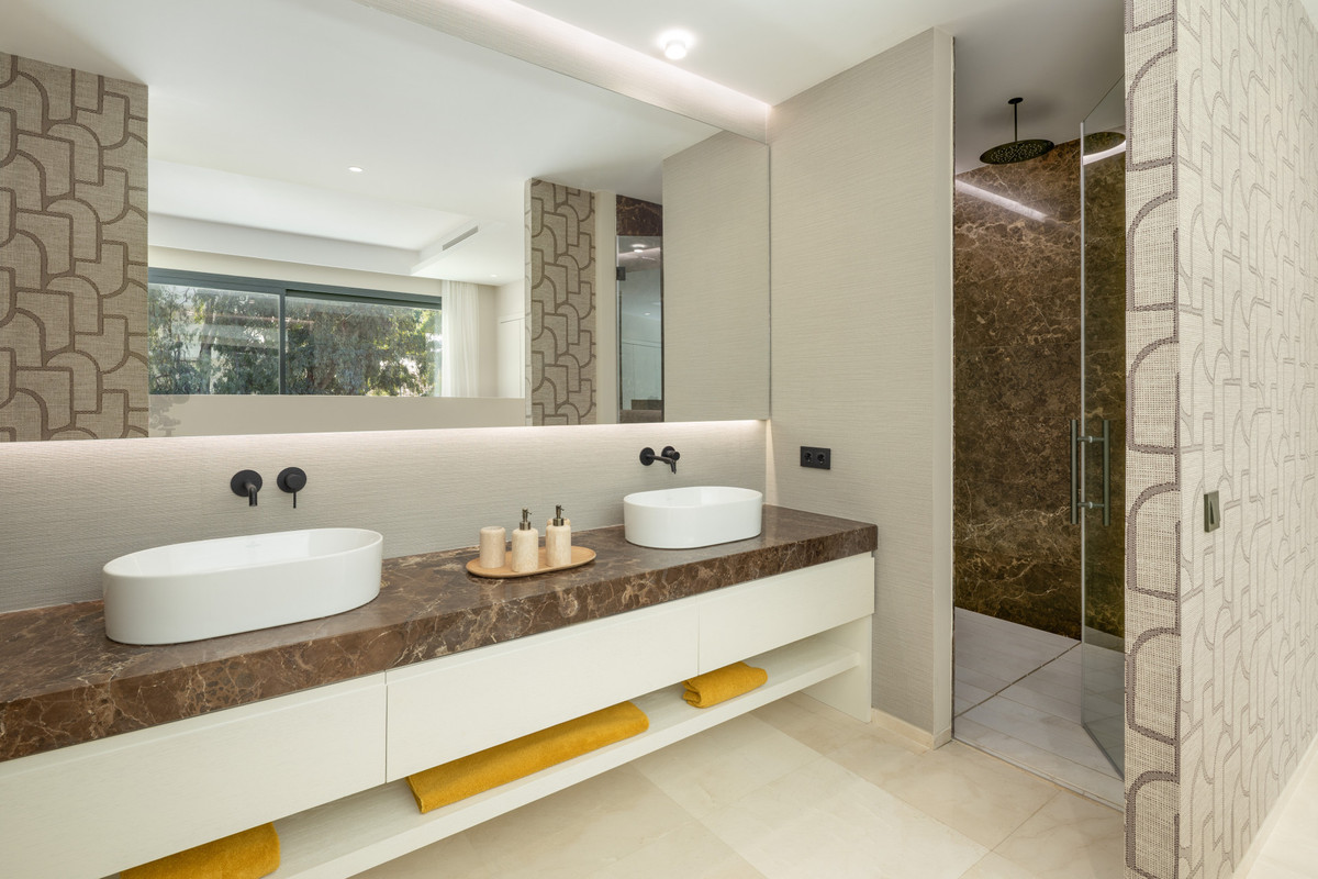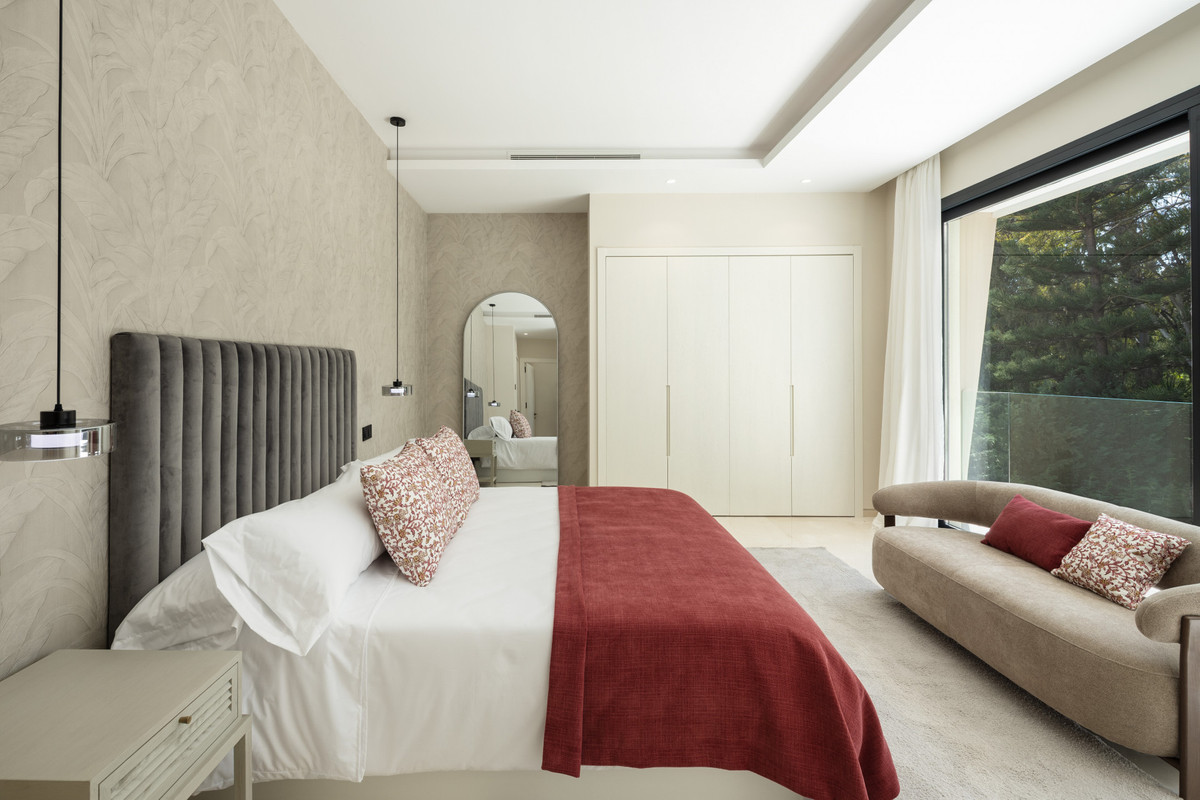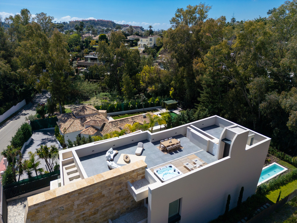 Set in the exclusive enclave of La Cerquilla, this exceptional brand-new villa for sale is a masterclass in contemporary luxury, offering five spacious bedrooms and seven beautifully appointed bathrooms across four meticulously designed levels. A striking double-height entrance creates an immediate sense of grandeur, flooding the home with natural light and setting the tone for the elegant interiors beyond. The main living area features a stylish fireplace and flows seamlessly into an open-plan kitchen, designed for both everyday living and sophisticated entertaining. The property is further enhanced by a state-of-the-art home automation (domótica) system and an advanced automatic air renewal system, ensuring optimal comfort, efficiency, and air quality throughout. On this level, a guest bedroom with en-suite enjoys tranquil garden views, providing comfort and privacy. The first floor is dedicated to refined living, highlighted by an impressive master suite complete with a stunning walk-in wardrobe and a luxurious en-suite bathroom. An additional guest bedroom with en-suite is also located on this level, maintaining the home’s high standard of comfort throughout. Ascending to the rooftop solarium, you’ll discover a true lifestyle haven. Complete with a jacuzzi and lounge area, this space offers breathtaking views of La Concha mountain perfect for sunset cocktails and relaxed evenings under the Mediterranean sky. The lower level is designed for leisure and functionality, featuring a fully equipped gym, a bespoke bodega, a second living room, and an additional kitchen with bar area. This level also includes two en-suite guest bedrooms, both with direct access to a secondary pool area and landscaped gardens, creating a private retreat for guests. A three-car garage and guest toilet complete this floor. Blending cutting-edge design with luxurious amenities, this villa offers an unparalleled living experience in one of Marbella’s most sought-after locations. The property also includes a lift providing seamless access to all floors, enhancing both convenience and accessibility. La Cerquilla is a quiet residential enclave known for its low-density layout and a mix of contemporary villas and Mediterranean-style homes set on large private plots. The environment is calm and established, with a strong sense of privacy while remaining close to everyday services. Nearby golf courses such as Los Naranjos Golf Club and Las Brisas Golf Club are a key attraction, offering well-maintained facilities and an active sporting lifestyle. Dining and social life are easily accessible, with restaurants such as Breathe and Mosh Fun Kitchen providing a range of contemporary cuisine and relaxed social settings. Everyday convenience is supported by nearby commercial areas like Centro Plaza, which includes shops, cafés, and essential services. The beach is only a short drive away, allowing quick access to the coast while maintaining the calm residential character of the area. Families benefit from proximity to established international education options such as Aloha College, and the surrounding road network provides straightforward connections to nearby towns and coastal destinations. This villa stands out for its scale, layout, and versatility, offering a modern living experience in a well established residential environment defined by privacy, comfort, and accessibility. The furniture is sold separately at 200.000Euros,