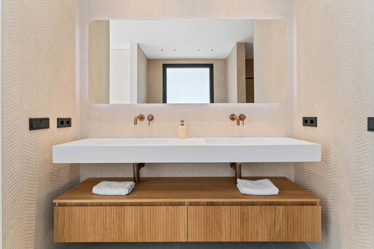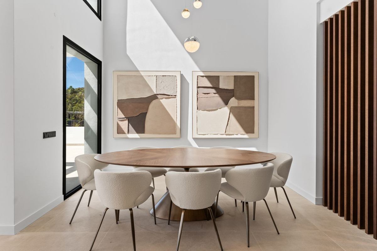 Set within an exclusive enclave on the Costa del Sol, this exceptional contemporary villa redefines refined living through a seamless balance of architecture, comfort and natural surroundings. Carefully designed to offer privacy, space and elegance, the property features four spacious bedrooms, four bathrooms, a private pool and a garage with capacity for three vehicles, creating a residence that functions as both a luxurious home and a tranquil retreat. Located in the sought after Buenavista urbanisation, with private access and close proximity to all essential amenities, the villa enjoys a privileged position between the sea and the mountains. This unique setting offers a rare combination of peaceful living and easy access to leisure, services and the coastline. The design maximises light and openness, with high ceilings that enhance the sense of space and continuity throughout the interiors. The main living areas flow effortlessly towards the outdoor spaces, where a striking infinity pool becomes a central feature, creating a natural visual connection with the surrounding landscape. The generous basement level provides a versatile area that can be adapted to suit individual lifestyles, whether as an entertainment space, gym, cinema room or additional living area, offering complete flexibility to personalise the home. Every element of the construction has been selected with a focus on quality, durability and aesthetics. The kitchen is fitted by Porcelanosa, complemented by porcelain flooring and wall tiling from the same prestigious brand, creating a cohesive and elegant finish throughout the property. Aluminium window systems by Strugal incorporate thermal break technology, double security glazing, solar control and low emissivity glass, ensuring excellent insulation, energy efficiency and security. Bathrooms are fitted with sanitary ware by Galassia and taps by Nobili, combining functionality with refined design. Interior details have been equally considered, with solid white lacquered doors and fully fitted wardrobes including integrated drawer systems, offering both practicality and style. Comfort is a key feature of the villa, with water based underfloor heating installed throughout all rooms, alongside a fully integrated air conditioning system with Airzone control for precise climate management. Hot water is produced via an efficient aerothermal system. The property also includes a basic home automation system for lighting control, as well as LED lighting installed throughout, enhancing both efficiency and ambience. The villa also includes pre installation for advanced home automation, allowing the owner to further customise and control the property according to personal preferences. The result is a home where every detail has been thoughtfully planned to deliver a high standard of living, combining modern technology, premium materials and a privileged location to create a truly exceptional residence on the Costa del Sol.